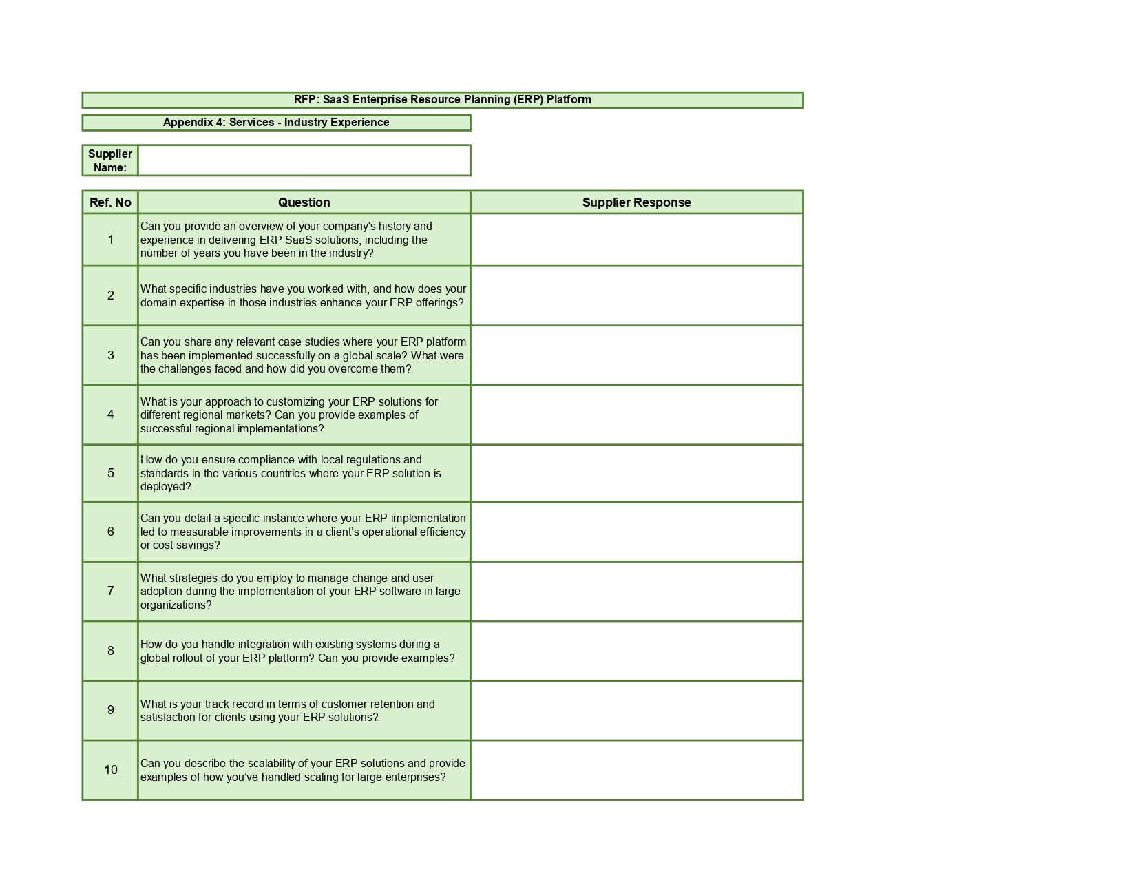 Whether you’re replacing a legacy on-premise system, migrating from SAP ECC to SAP S/4HANA, moving to Oracle NetSuite, or evaluating multi-tenant SaaS ERP solutions, our template ensures your procurement process is: