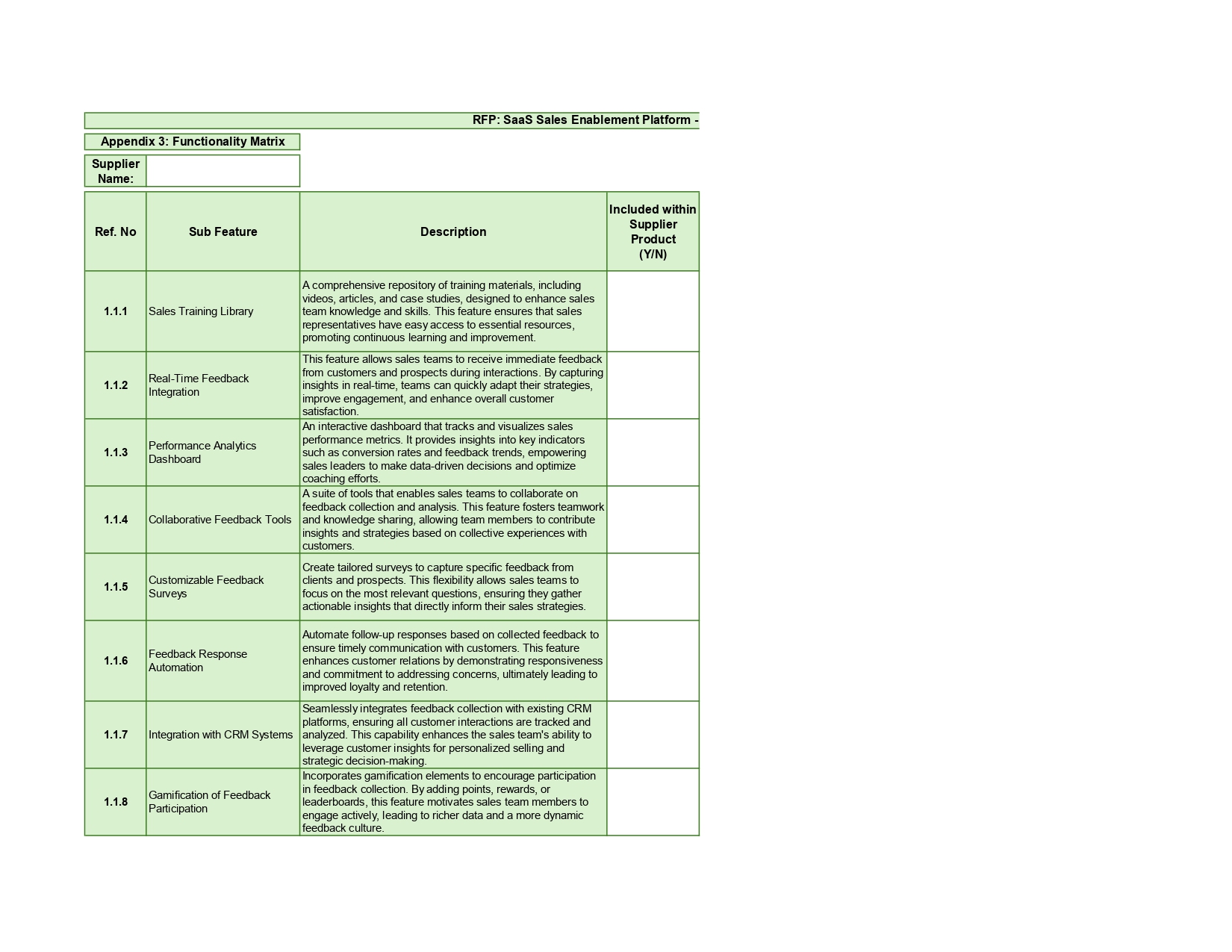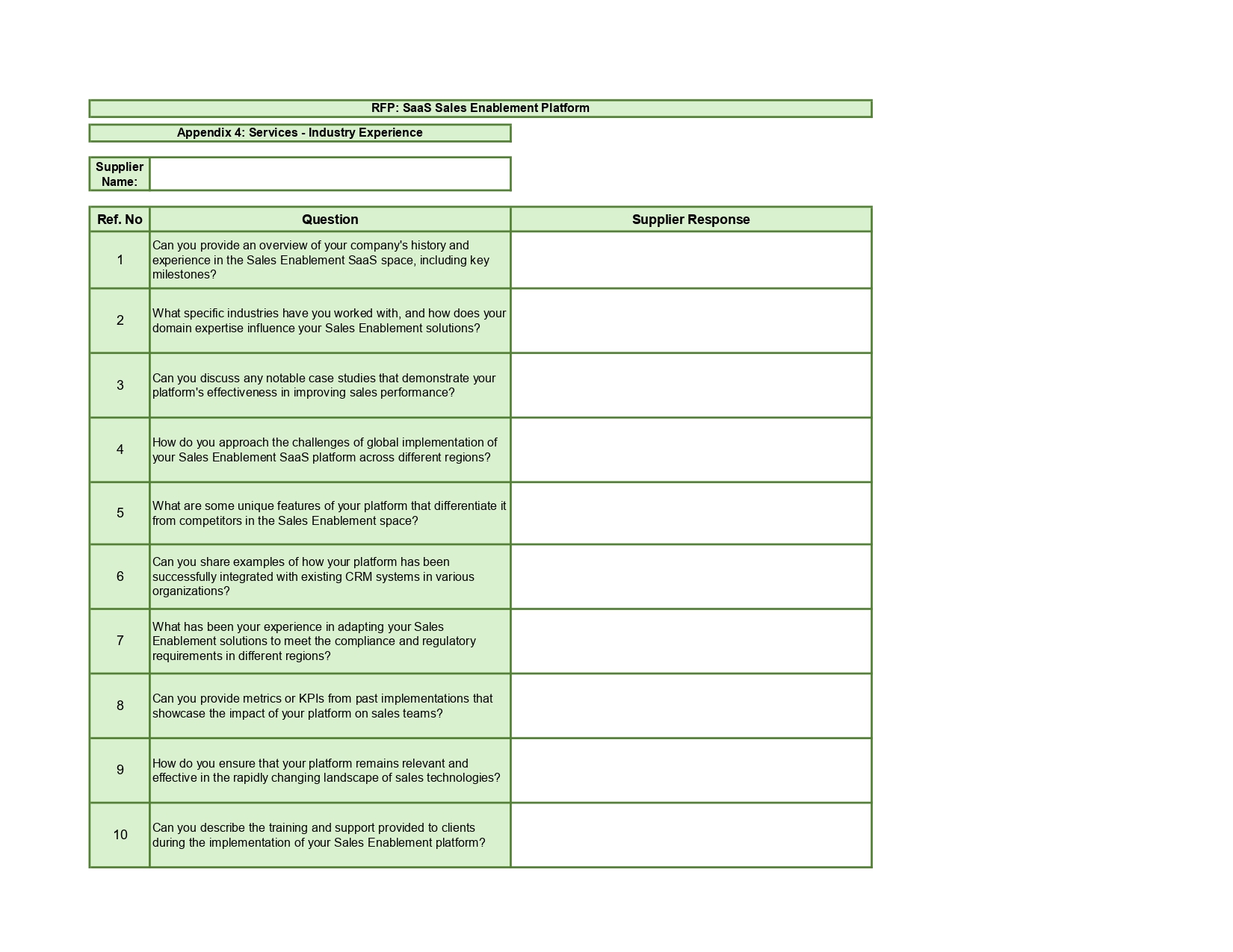 Our SaaS Sales Enablement Platform RFP Template includes: